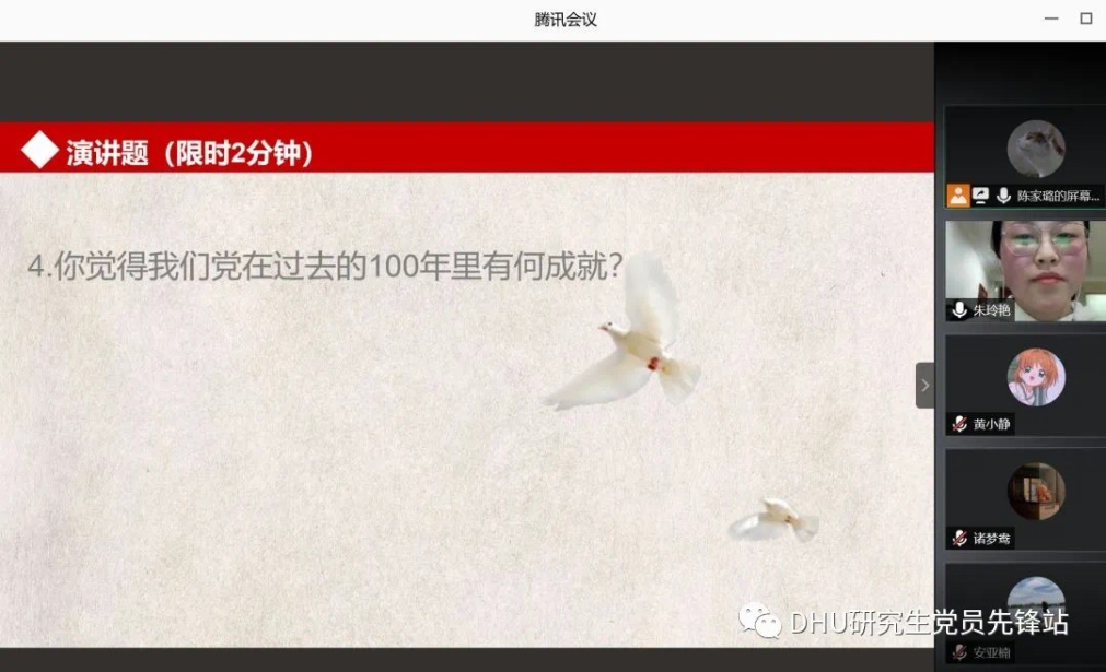 最后,支部书记陈家璐对本次四史知识竞赛做了点评与总结,希望党支部成员以本次四史知识竞赛为契机,站在历史的重要节点上,加强“四史”学习教育,要通过学习“四史”,深刻认识红色政权来之不易、新中国来之不易、中国特色社会主义来之不易,深刻认识我们党先进的政治属性、崇高的政治理想、高尚的政治追求、纯洁的政治品质,以史为镜,进一步检视和校准坐标,做到不忘历史、不忘初心,知史爱党、知史爱国。