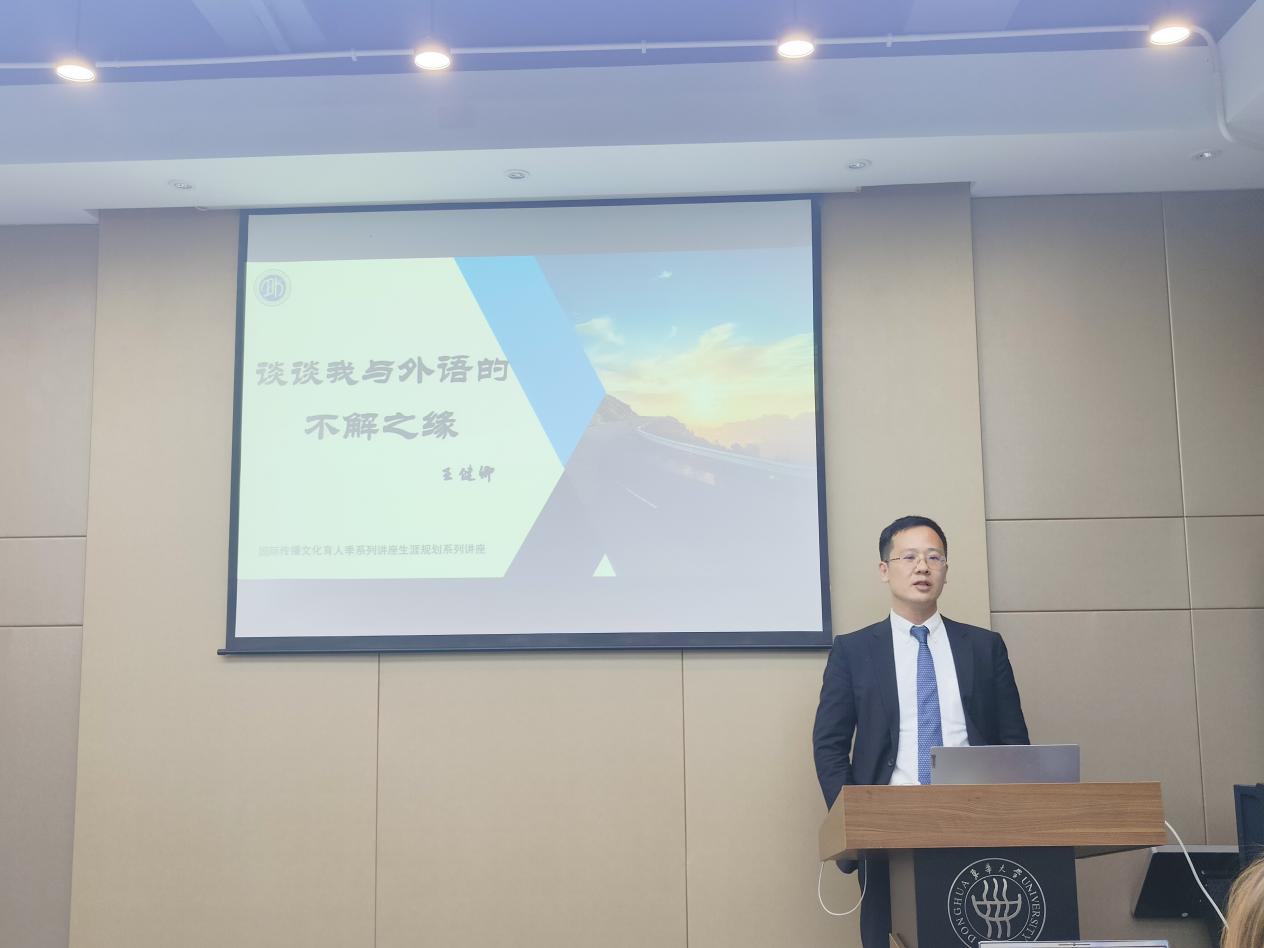 11月6日,必一运动官网英语系04届员工,现任商务部外事司翻译处副处长、一级调研员王健卿先生应邀回到母校,与必一运动官网在校师生畅谈语言学习与翻译工作经历,分享自己的为学为人之道。讲座由必一运动官网党委副书记邓姗姗主持。