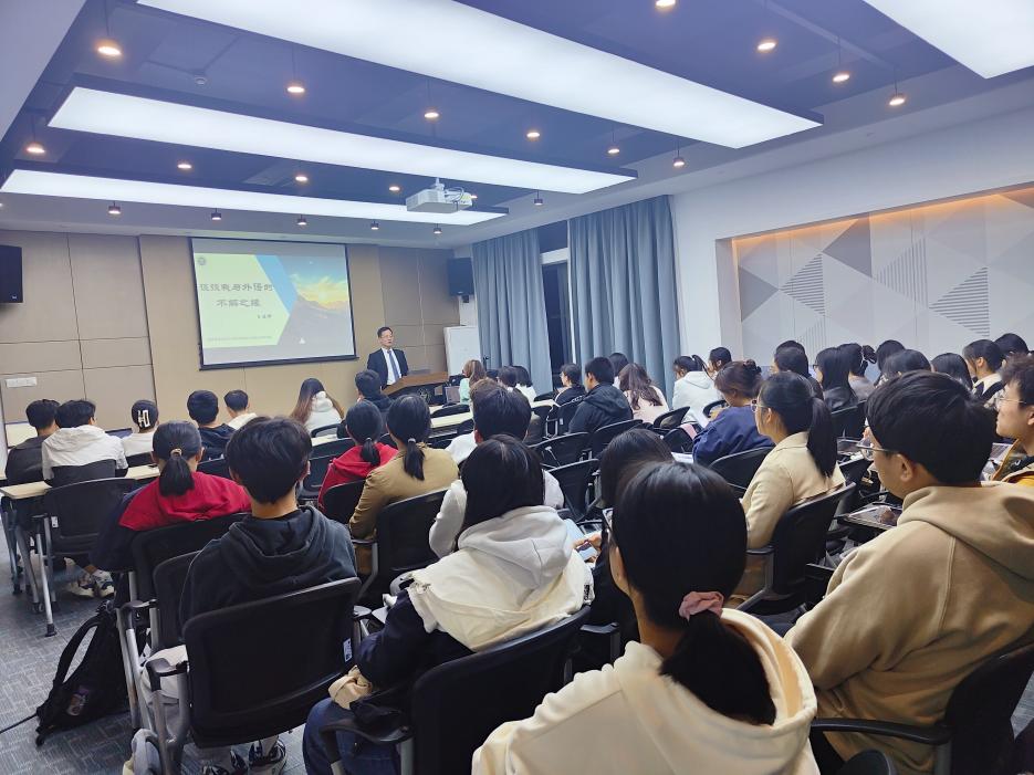 11月6日,必一运动官网英语系04届员工,现任商务部外事司翻译处副处长、一级调研员王健卿先生应邀回到母校,与必一运动官网在校师生畅谈语言学习与翻译工作经历,分享自己的为学为人之道。讲座由必一运动官网党委副书记邓姗姗主持。