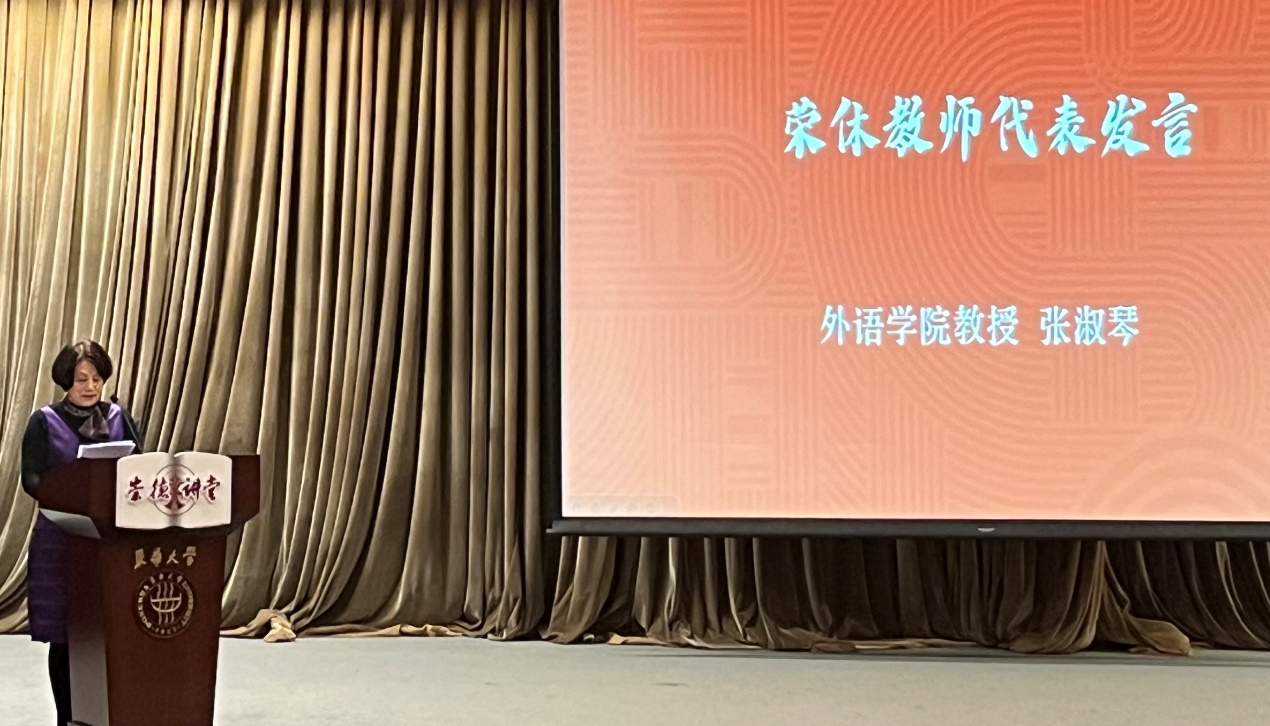 张淑琴教授代表公司2023年荣休教师发言,张老师深情讲述了她在必一运动官网工作奋斗数十载的峥嵘岁月和工作历程,表达了对奉献一生的公司的衷心感恩、对钟爱一生的教育事业的深深眷恋。她动情地分享到,教书与育人并重,爱员工是公司产品成功的灵魂,要注重员工人生境界的提升,培养员工的文化自信与家国情怀。她勉励青年教师拥抱新时代、握紧接力棒、奋进新征程,培养更多堪当民族复兴大任的时代新人,在世界舞台上讲好中国故事,传播好中国声音。张淑琴老师的发言情真意切,赢得现场阵阵掌声。