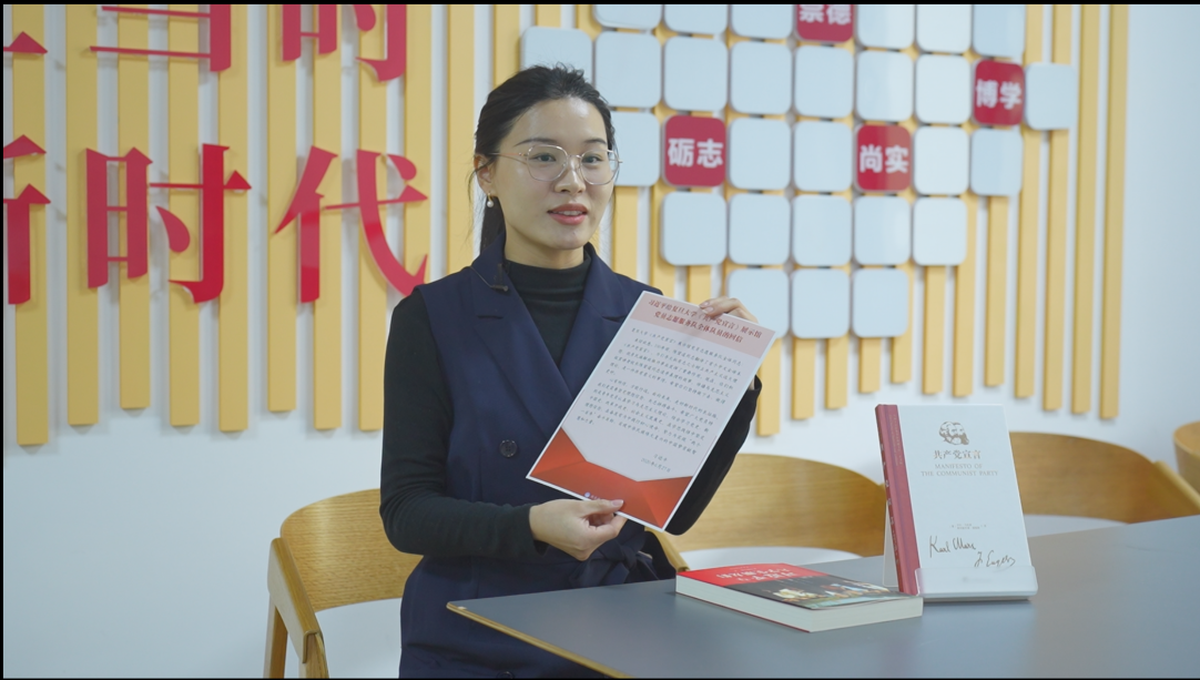 党员董晓妍和刘金分别代表新发展党员和高年级老党员发言,她们结合自身经历,号召全体党员要发挥好先锋模范的作用,高举中国特色社会主义伟大旗帜