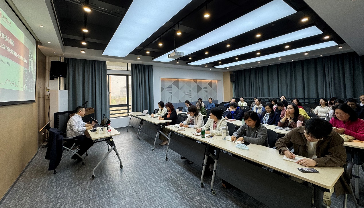 余建波详细解读了上海市重点课程、市一流课程、国家级一流课程的相关申报情况,从建设目标、内容、方法及成效等方面对申报书的具体撰写进行了深入细致的阐释,并结合公司学科特点提出了针对性建议。余建波指出,申报重点课程就是要做课程内容、方法及评价体系的改革,基础是团队建设,核心是课程内容,关键是教学成效。他强调,数智化教育是大势所趋,数字化技术正在深度融入课程建设中,我们应该充分利用“国家智慧教育公共服务平台”“虚拟教研室”“智慧树”等多种在线平台,强化合作交流,建设慕课和数字化教材等在线资源,促进课程不断推陈出新。