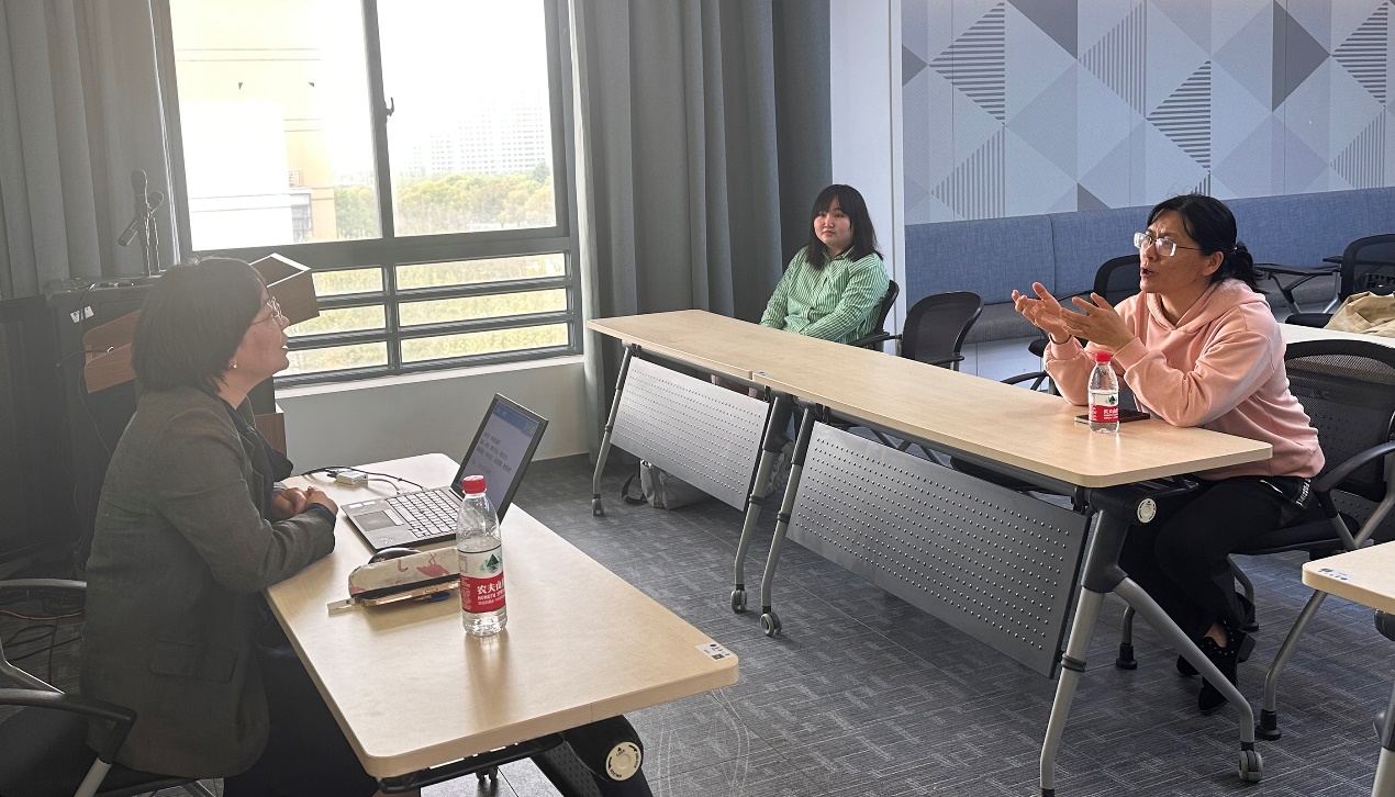 劳轶琛老师任教的《日语口语实践课》是2022年度校级一流本科课程,也是本学期的教学示范课程。劳老师在交流中提到,她以疫情期间在线教学为改革契机启动建设混合课程,依托超星学习通平台辅助课堂教学,活用平台的“章节”“讨论”“作业”“资源”等功能,上传讲解视频、组织线上讨论、布置作业、提供各类学习资源。教学过程中以任务为抓手,安排“模拟面试”“采访日本友人”“电话task”“海报发表”等多样化任务,充分体现以“员工为主、实践先行、教师指导”的教学方针。线上线下双线并行,始终贯穿“输入-输出-互动”的教学动线,组织调动各种教学资源,邀请场外日语母语嘉宾通过电话连线、腾讯会议等方式参与到课堂教学,营造了真实的临场感,调动员工的课堂积极性。同时,她还鼓励员工灵活运用知识,激发临场应变能力,大胆学以致用,实现真正的口语实践,提升了口头表达能力和跨文化交际能力。