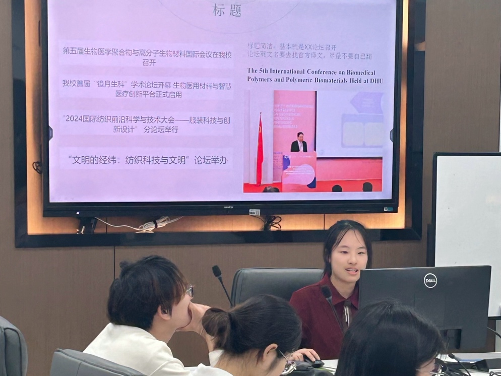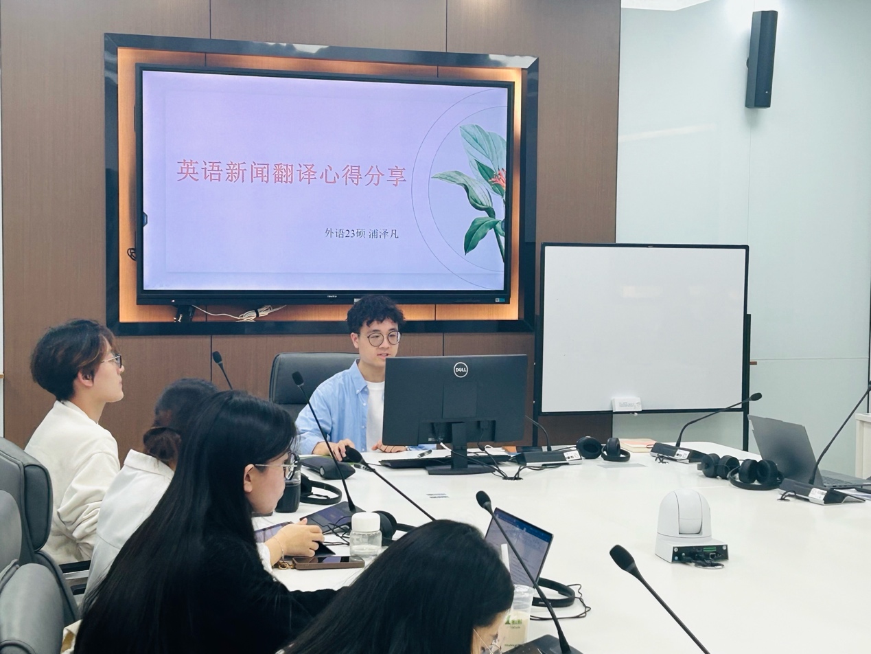 三位成员结合翻译实践,深入探讨了外宣翻译工作的策略与经验。王雨浠同学聚焦“新闻编译”,从论坛类新闻、活动事件新闻、科研新闻等类别入手,介绍如何根据受众特点和国际传播需求,选择恰当的新闻素材,强调外宣翻译要考虑到国外读者的阅读习惯和文化背景。
