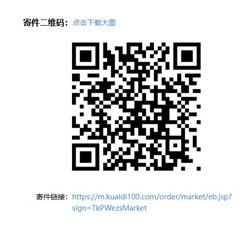 1.委托快递代取。请扫描以下二维码下单,自行选择快递公司。